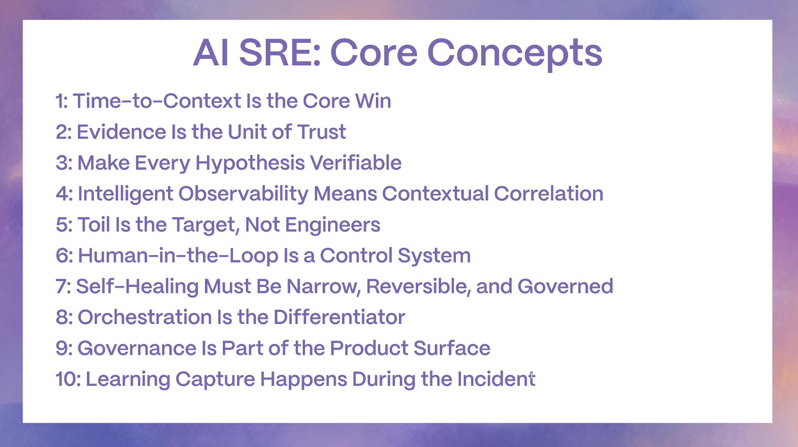 - The goal is toil reduction and safer decisions, not replacing engineers.