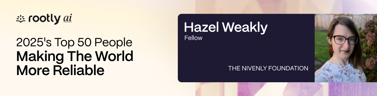 Hazel Weakly is a Fellow at the Nivenly Foundation, advancing sustainable governance for open source communities. She also spent time at Datavant as Principal Architect and Engineering Manager, driving platform engineering and organizational growth. Through Nivenly, she champions equitable futures in tech by supporting underrepresented contributors and building community-centered governance models.