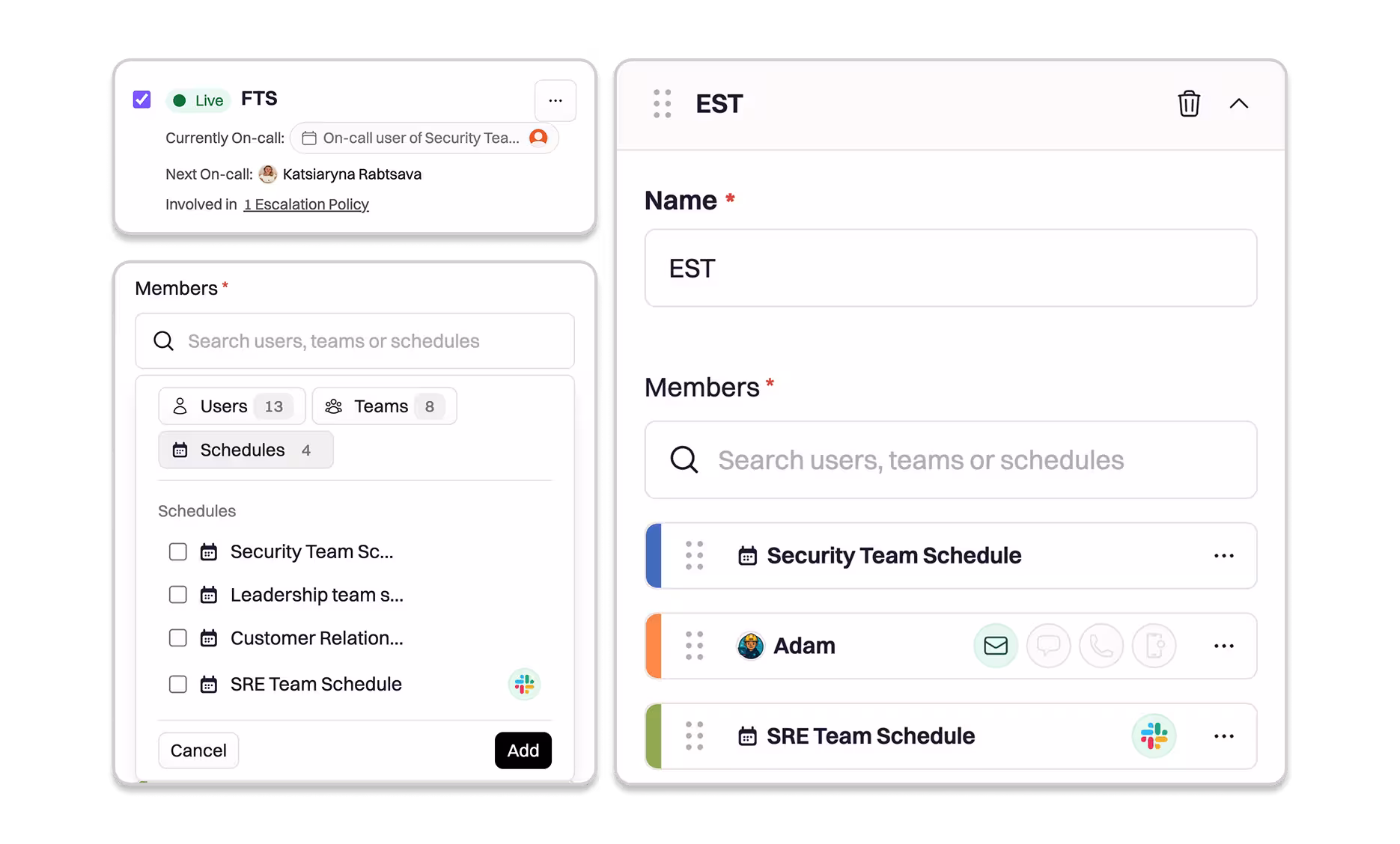 - Lower maintenance overhead: No more recreating mega-schedules or updating multiple places when team rotations change. If a team updates their schedule, the org rotation automatically stays current.